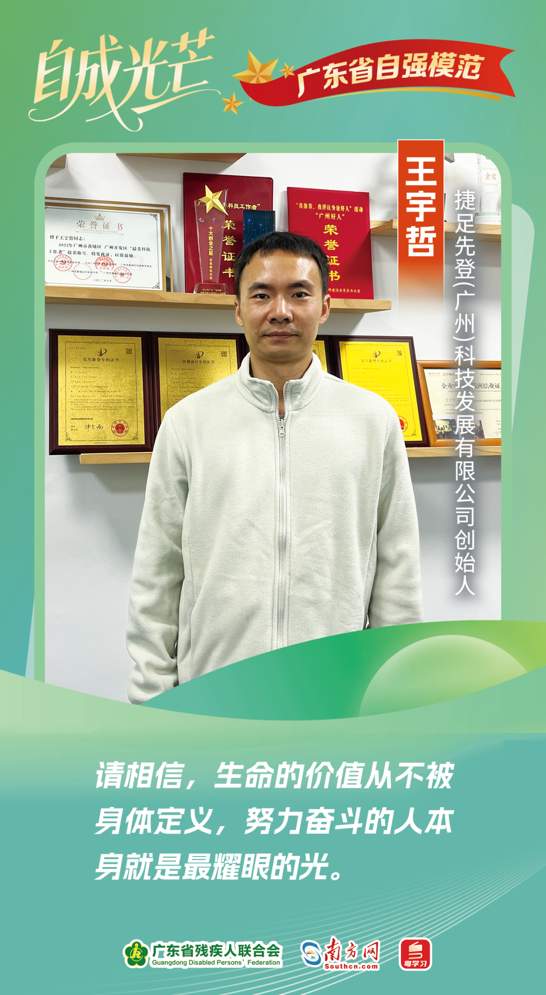 在捷足先登(广州)科技发展有限公司创始人王宇哲身上,汇集了创业者、假肢师、康复师、工程师、数据分析师等多重身份。他所带领的团队,始终致力于通过技术创新与精密制造,为使用者提供更具尊严与希望的康复辅具解决方案,以创新智慧打破国际垄断,用企业担当推动社会进步。他与辅具的结缘,始于一次人生的意外,但也引领着他走上关于突破、共融与社会进步的道路。